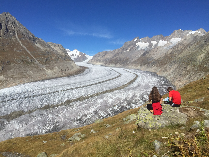 Dramatisches spielt sich momentan oberhalb des rasant abschmelzenden Aletschgletschers ab. Weil er unterhalb der Rieder- und Bettmeralp die Hänge nicht mehr zu stützen vermag, rutschen diese in besorgniserregendem Tempo von 20 cm im oberen und sogar 30 cm im untern Teil. Deshalb sind seit 29.9.16 viele Wanderwege gesperrt, neuerdings auch der Gratweg von Westen zur Moosfluh. Es lohnt sich, die gesperrten Wege zu meiden. Und es würde sich noch viel mehr lohnen, die Klima-Erwärmung zu stoppen! (Details: "Walliser Bote" 29.9.16 und Wanderung vor Ort)