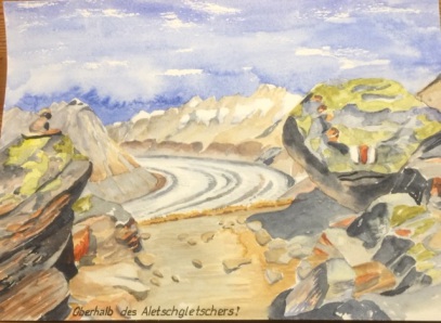 Dieses Aquarell gewann in einem Wettbewerb und wird die Titelseite des Büchleins "Oberwallis erwandern und erleben" (im Sommer und im Winter) zieren.